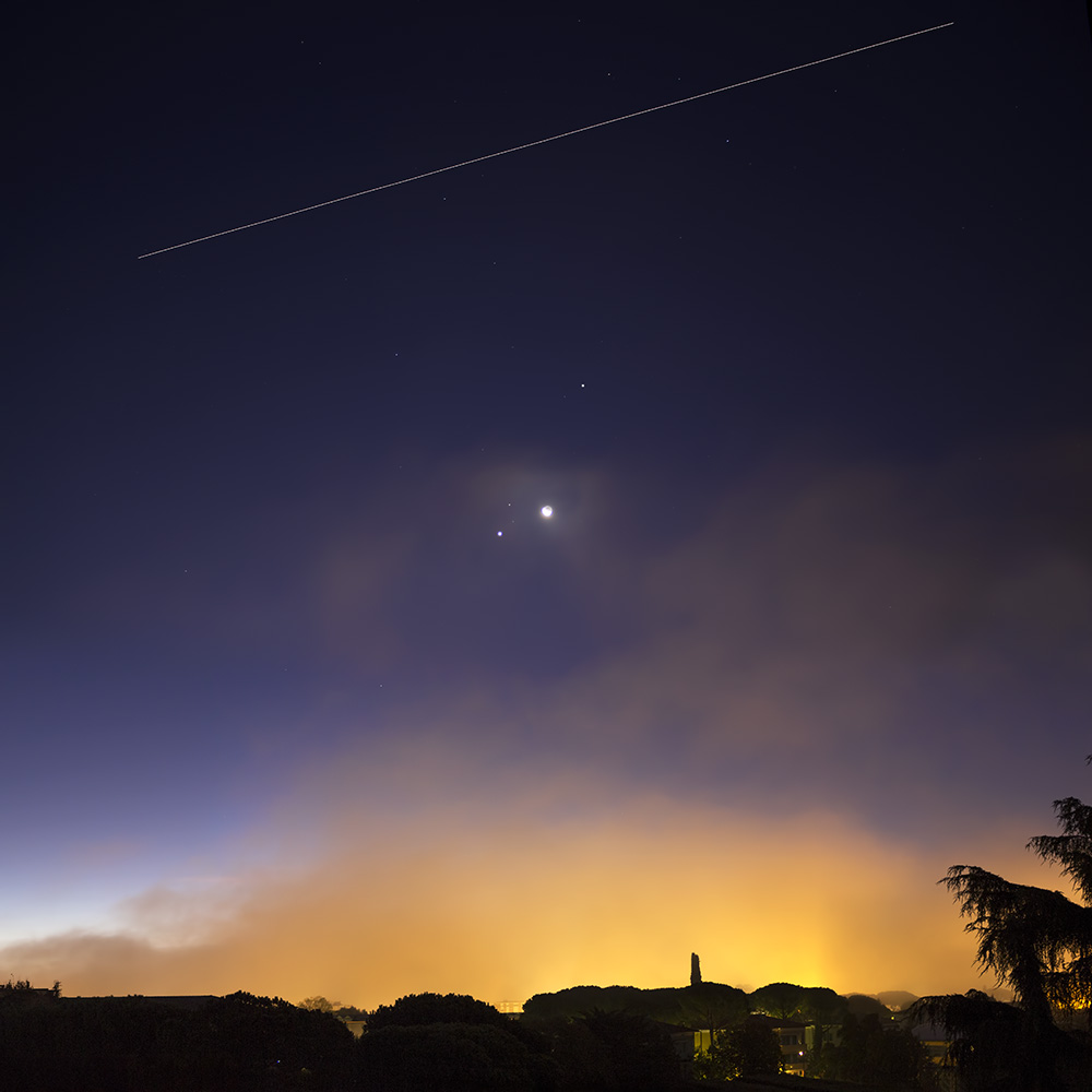Congiunzione tra Marte, Venere, Luna, Giove ed ISS nella Nebbia