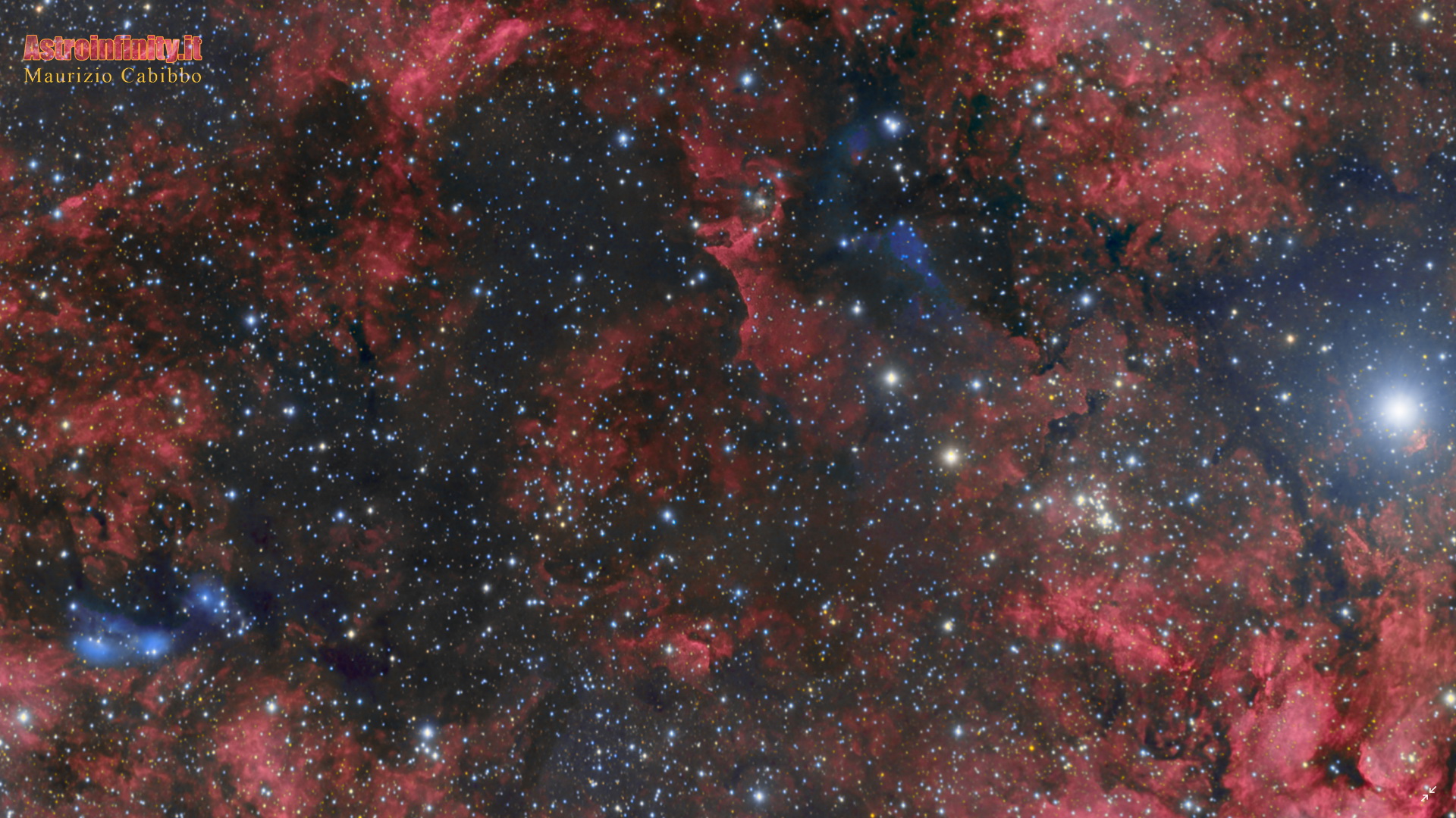 Dettagli 100%x: da destra a sinistra….Sadr, ammasso stellare "Bruco di Geometride", LBN248 (in alto), VdB131 e VdB132 in NGC6914 (a sinistra)