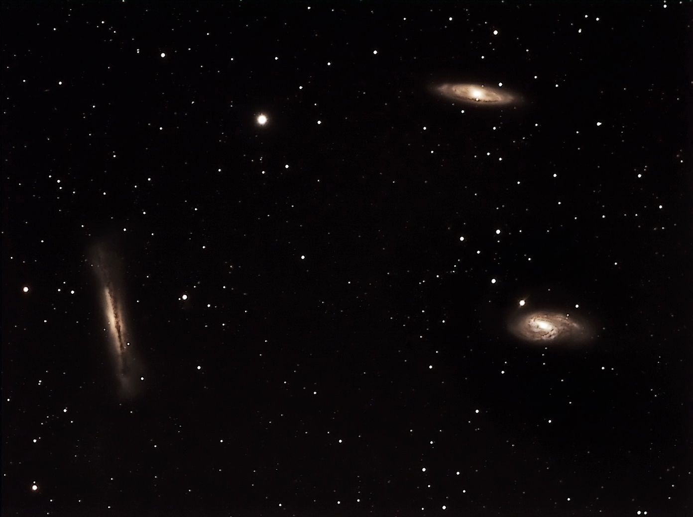 Tripletto Leone – Galassie NGC3628, M65 e M66 – LEO – Immagine ripresa con rifrattore apocromatico Takahashi FSQ106EDXIII f/5, Guida con Orion Starshoot Autoguider su Takahashi TOA130 – Montatura Losmandy G11 – CCD Starlight Xpress SXVR H9C – 10 pose da 5 minuti – Agriturismo "Torre Doganiera" loc. Pievescola (SI)