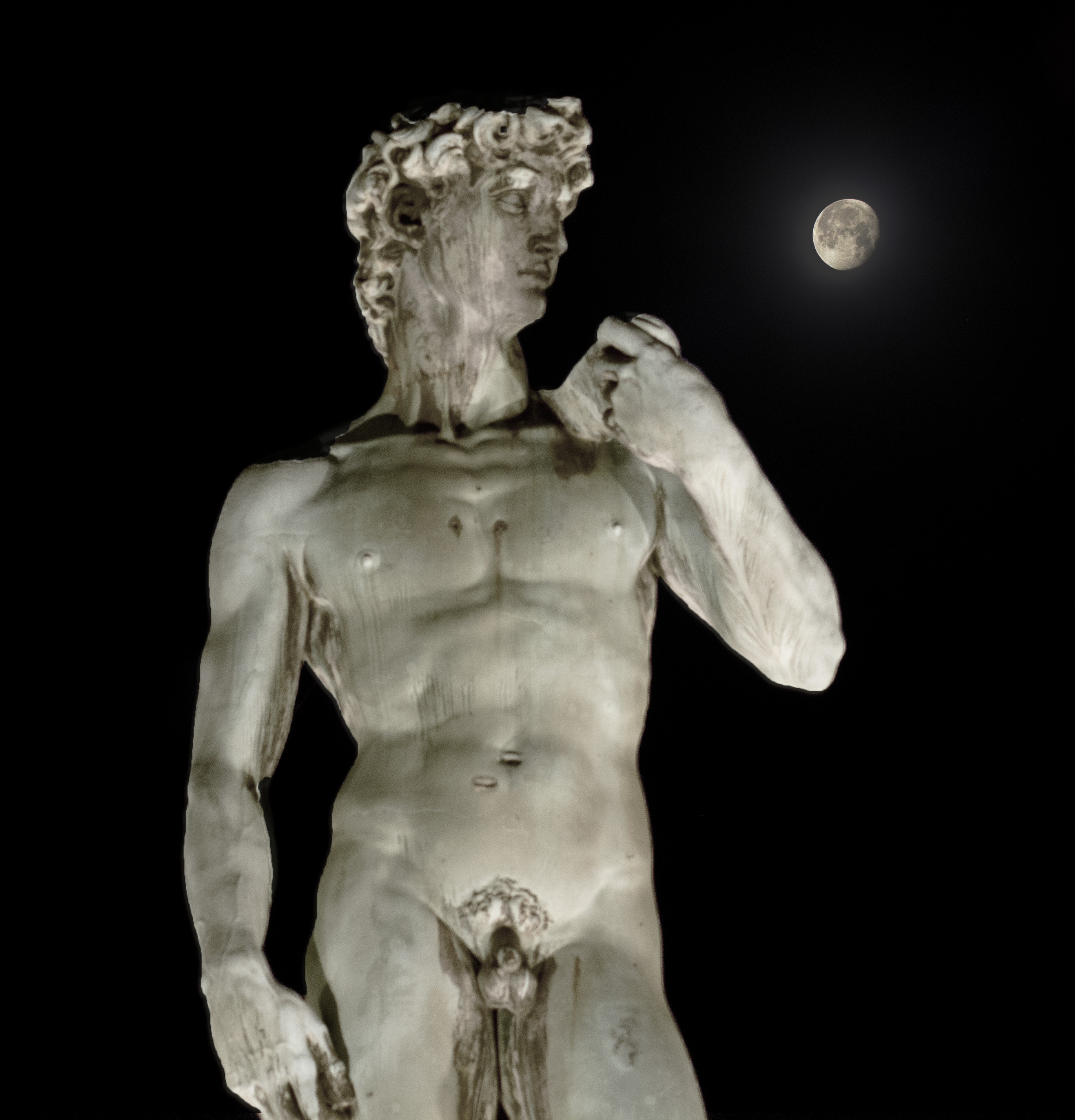 Piazzale Michelangelo a Firenze, durante la caccia alla cometa Neowise. La cometa non ha dato i frutti sperati, però il David che osserva la Luna in fase calante ha stuzzicato la mia fantasia.