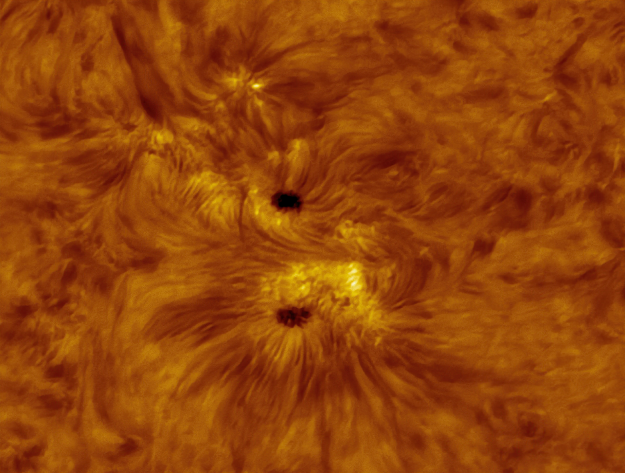 L’immagine mostra una ripresa nella banda stretta dell’idrogeno del gruppo di macchie solari nr°2772, regione particolarmente attiva in questo momento di calma solare.