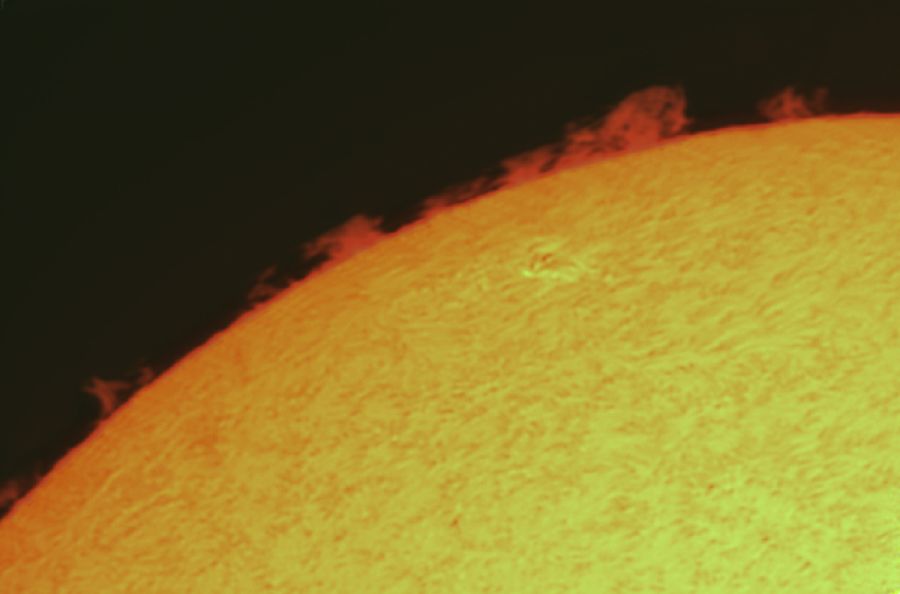 Gruppo di Protuberanze solari,rprese con telescopio Lunt 50mm,camera qhy5l II-C.tecnica della ripresa con proiezione oculare da 9mm.