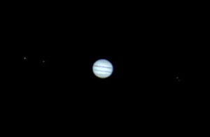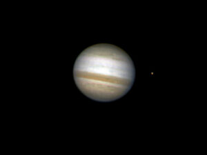 Ombra su Giove. L’ombra di Ganimede proiettata su Giove. Da sinistra a destra sono visibili Europa, Ganimede (ingrandita nel particolare) ed Io.