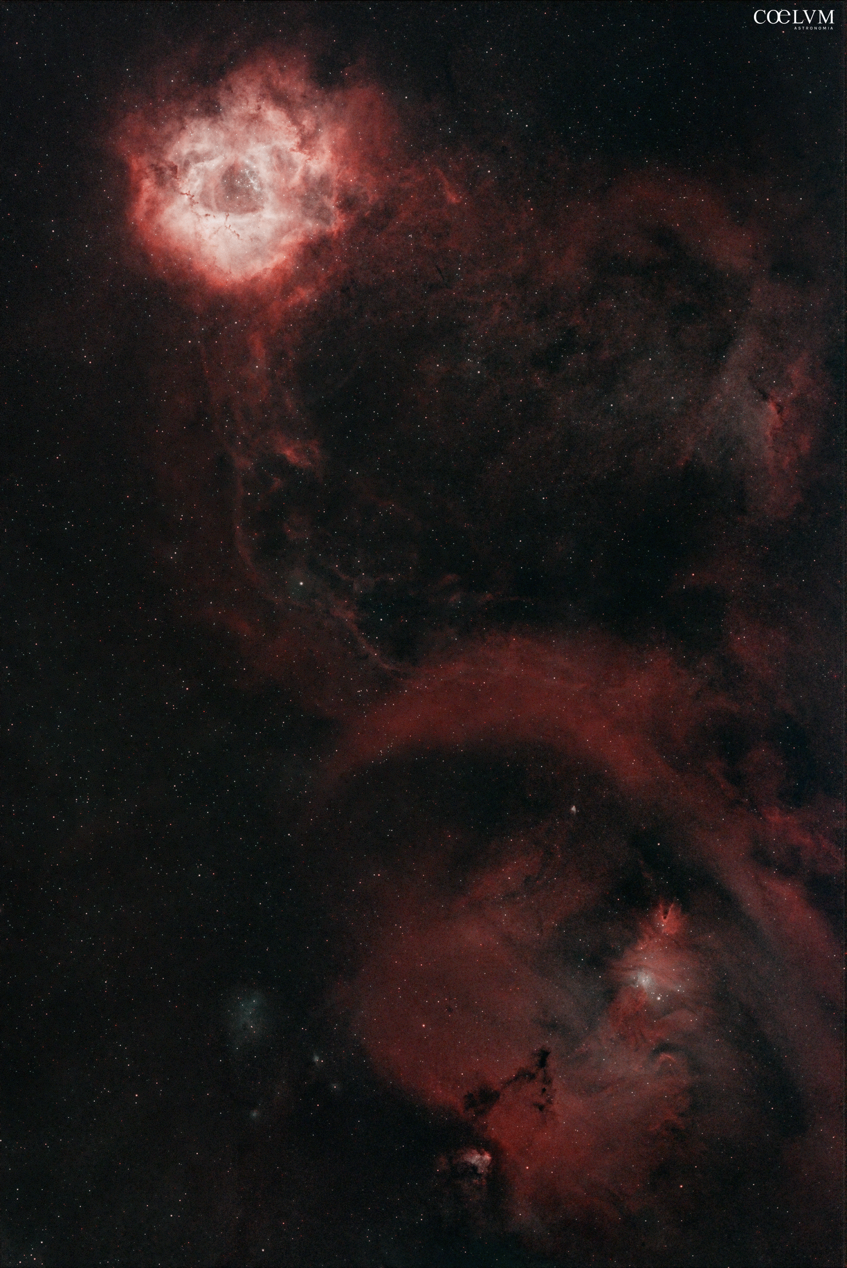 Una immagine a campo largo (180mm su PAS-C) dalla Nebulosa Rosetta (NGC 2237) alla Nebulosa Christmas Three (NGC 2264)