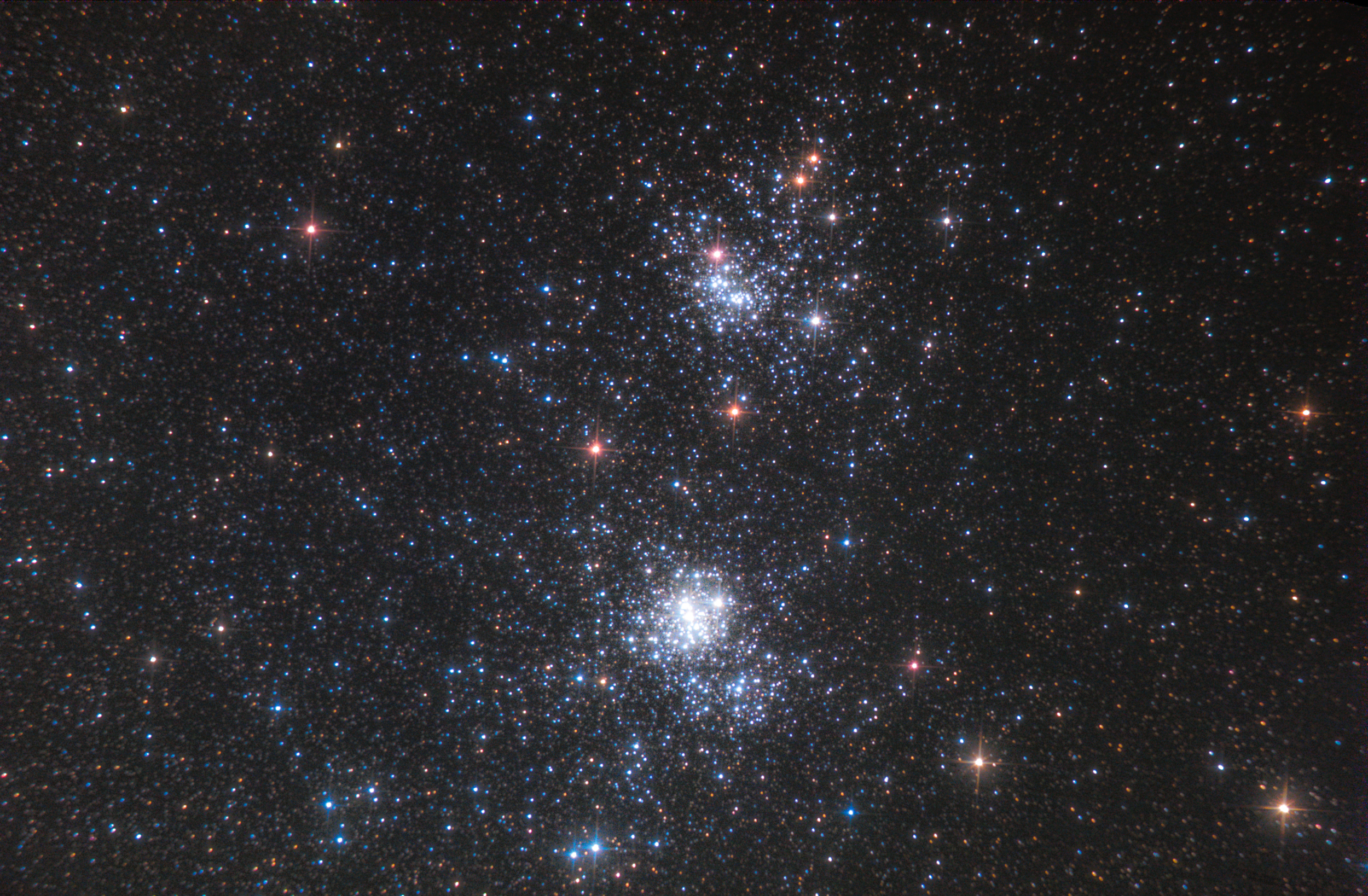 Immagine del doppio ammasso del Perseo, ripreso con telescopio newtoniano 150/750 su montatura Equatoriale Eq 3.2 non guidata e reflex Canon 350d full spectrum