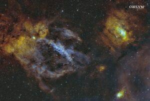 Nebulosa Ragno IC417 e Nebulosa Mosca NGC 1931 a cura di Veronica Perogio e Salvo Semilia Nebulose Ragno e Mosca, situate nella Costellazione dell’Auriga, rispettivamente a 10.000 e 7.000 a.l. dalla Terra. La Ragno è composta da filamenti di nebulosa ad emissione che ricordano le zampe, appunto, di un ragno e contiene all’interno di essa un ammasso aperto nominato Stock 8. La Mosca viene anche chiamata Orione in miniatura, in quanto ne condivide alcune caratteristiche. Si tratta di una nebulosa sia ad emissione che riflessione e anch’essa contiene un ammasso aperto. Entrambe le nebulose sono state studiate dal telescopio IRAS poiché contengono le sorgenti di radiazioni infrarosse e, nella Mosca, di un maser (produzione di onde elettromagnetiche utili per definire la presenza di determinate sostanze molecolari) di H2O. Progettino autunnale a cura di Veronica Perogio e Salvo Semilia. Alla resa dei conti, la quantità maggiore di dati di queste combo non apportano chissà quale grande miglioria, ma noi ci divertiamo un botto e le facciamo comunque. L’acquisizione di dati è avvenuta nelle notti di Dicembre 2025 da Castelfidardo (AN) e Modica (SR) con frame da 600 e 300 per un totale di 34h.