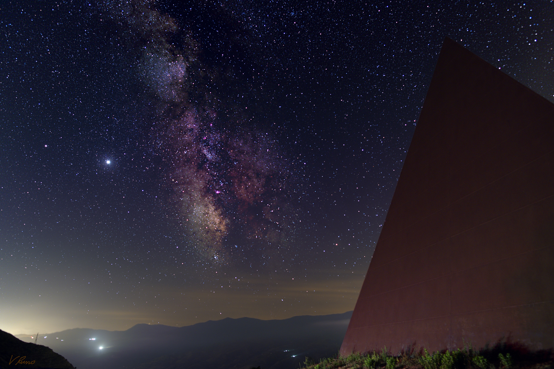nella foto, la piramide è a destra, mentre il centro è dominato dalla Via Lattea mentre a sinistra sono visibili, nell’ordine, Giove e Saturno.