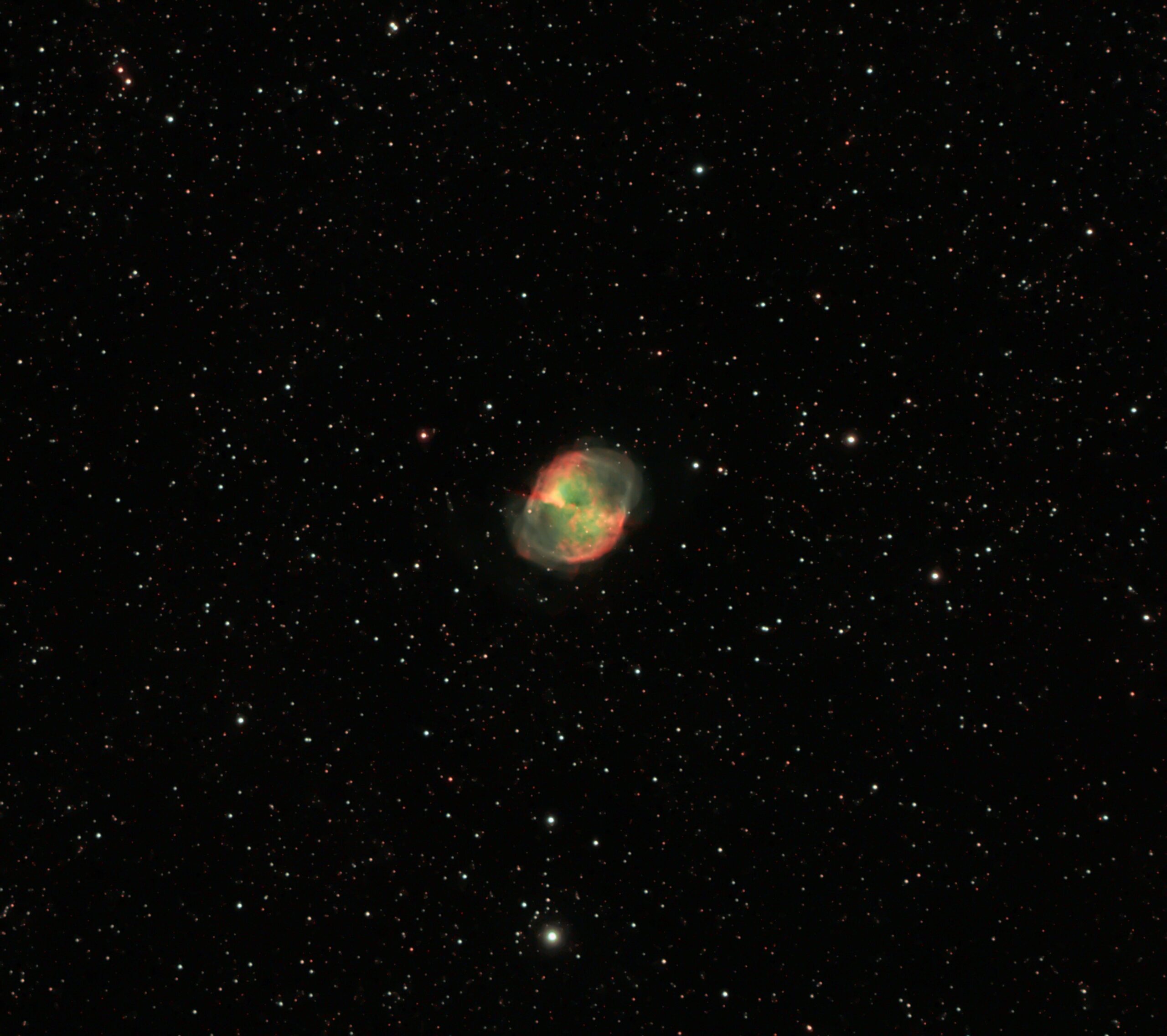 La nebulosa Manubrio, anche conosciuta con il nunero 27 del Catalogo Messier è stato il primo oggetto deep sky in assoluto che abbia fotografato. Le prime foto le ho realizzate con il CPC 800 Celestron, ed anche a causa della montatura altazimutale non potevo permettermi pose più lunghe di pochi secondi. Adesso dopo circa 5 anni, con una montatura equatoriale Ioptron Cem25P e l’ausilio di un piccolo 72ED SW unito alla tecnologia ZWO, sono riuscito finalmente a farla abbastanza simile a quelle degli osservatori più preparati.