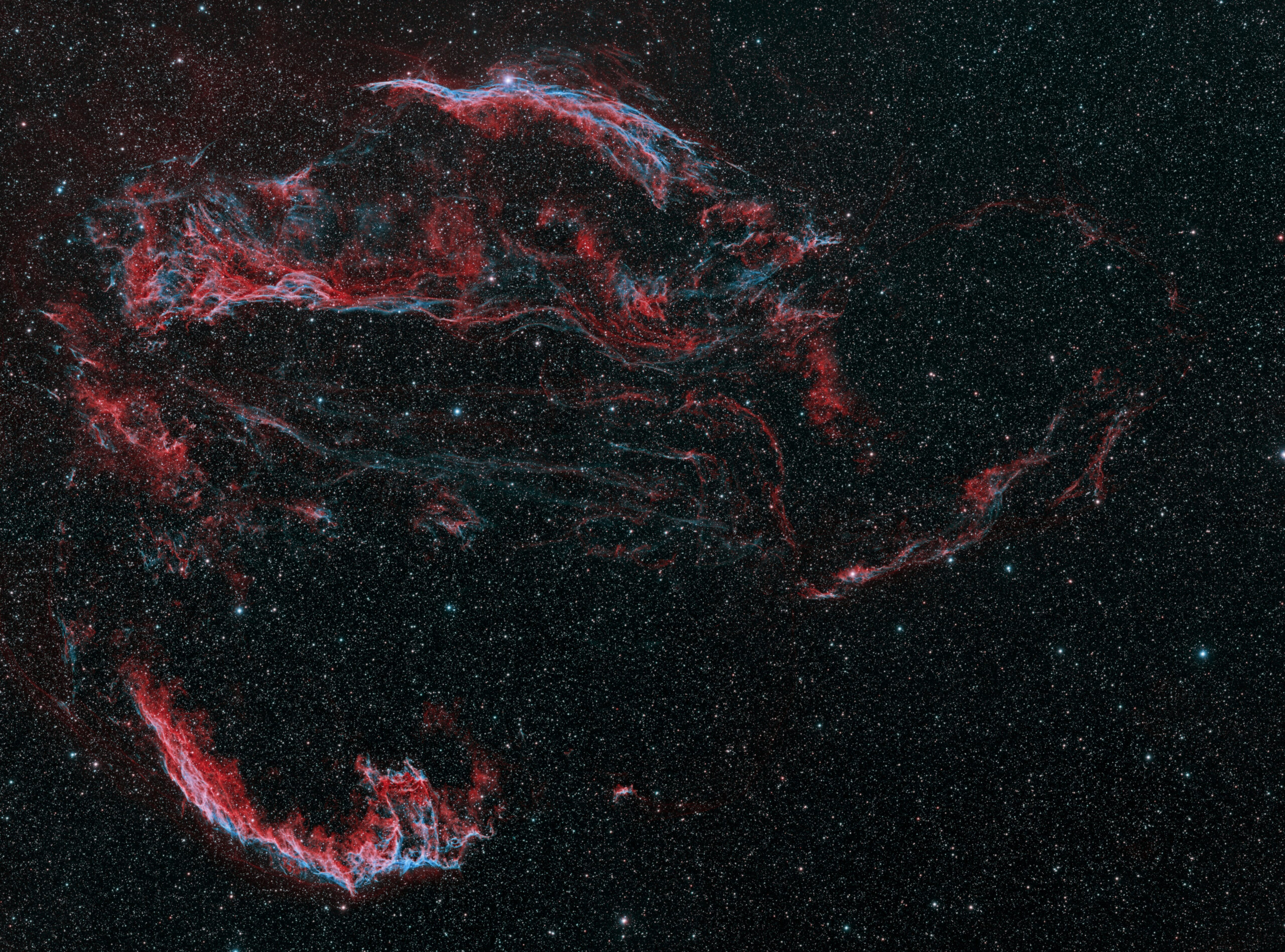 Il mosaico (8143×6035 px) è composto da 4 immagini riprese con il setup di Ivan Busso dal suo osservatorio remoto e elaborate da Vittorio Liberti. Le riprese, causa condizioni meteo, hanno richiesto circa un mese. Le 4 immagini sono ognuna composta da 50×300" Ha e 50×300" OIII. Telescopio rifrattore Officina Stellare 105, montatura Paramount MX, camera di ripresa ASI 1600 MM-C. Elaborazione Pixinsight