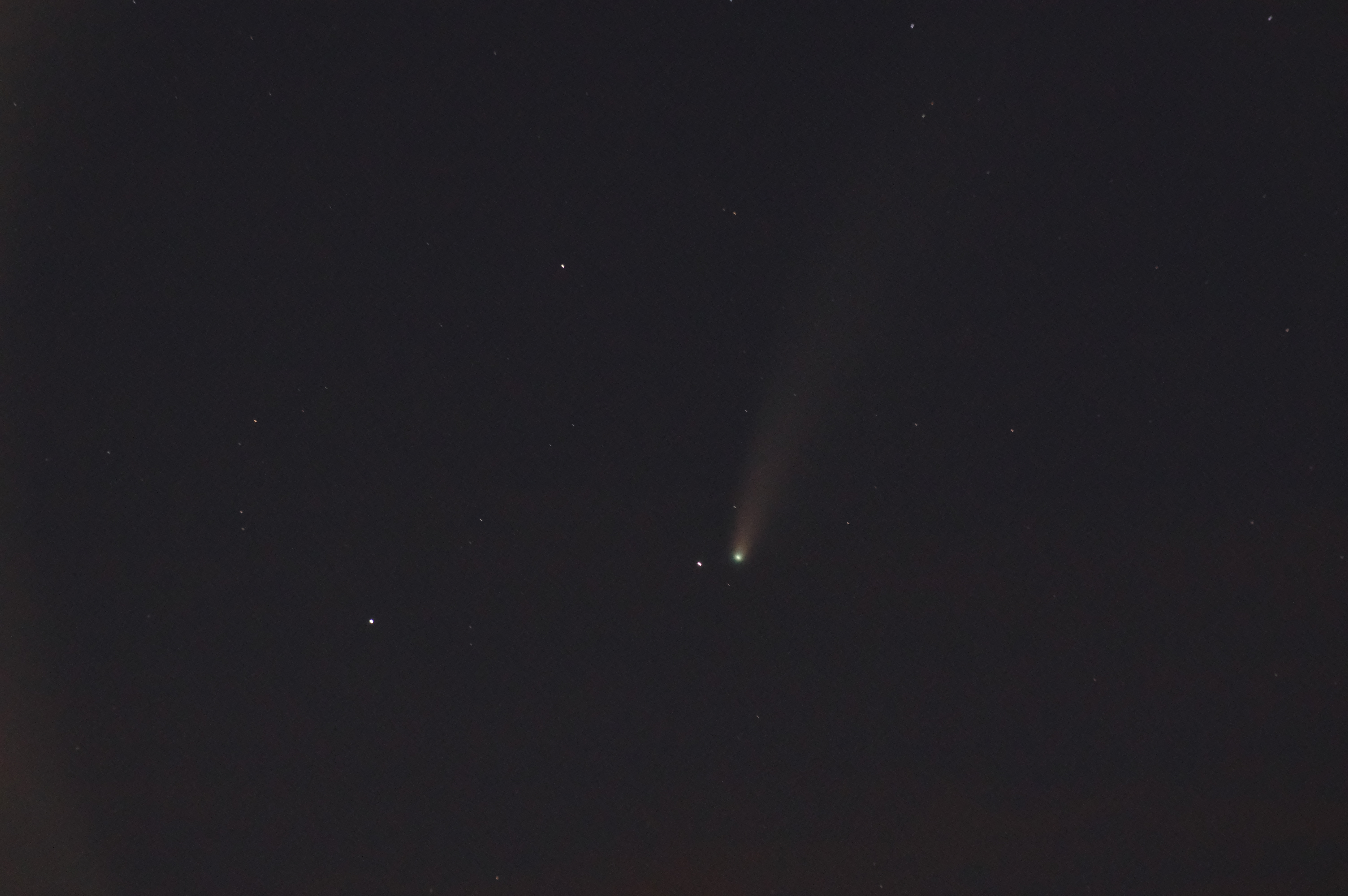 Questo scatto ritrae la Cometa C/2020 F3 Neowise il giorno 18 luglio 2020 alle ore 22:29 congiunta con Iota (Talitha Borealis) e Kappa (Talitha Australis) Ursae Majoris le due stelle che compongono la zampa anteriore della costellazione dell’Orsa Maggiore.