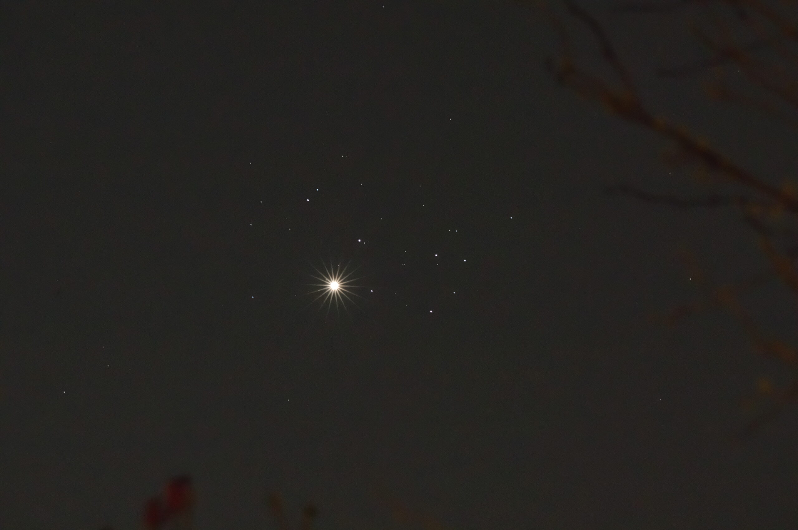 Congiunzione stretta di Venere con la costellazione delle Pleiadi.