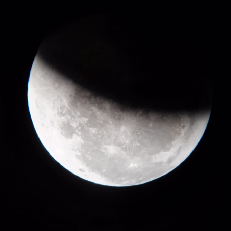 Immagine dell’Eclissi di Luna del 27.7.18, ottenuta appoggiando il cellulare all’oculare da 25 mm di uno Skywatcher Maksutov-Cassegrain.