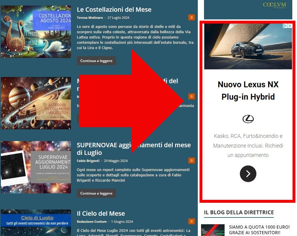 Il banner sarà visibile in home per tutti i lettori desktop (PC) nella barra laterale e smart device (phone e tablet) sotto gli articoli principali. A rotazione alternato con altre inserzioni. Alla scadenza del termine il banner sarà rimosso in automatico e saranno fornite le statistiche di visualizzazione e click.