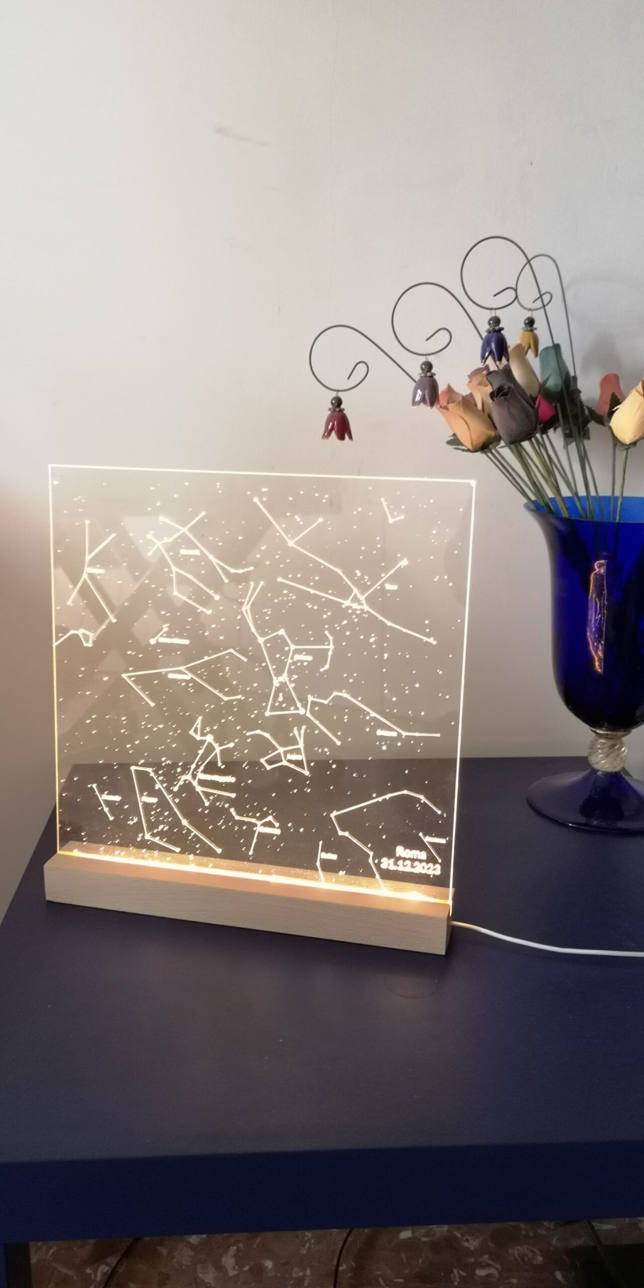 Immerso nel nostro universo artistico, il cielo stellato dell’evento indimenticabile prende vita in un acrilico raffinato e illuminato. Ogni dettaglio contribuisce a ricreare l’atmosfera unica di quella notte speciale, incastonata nella memoria.