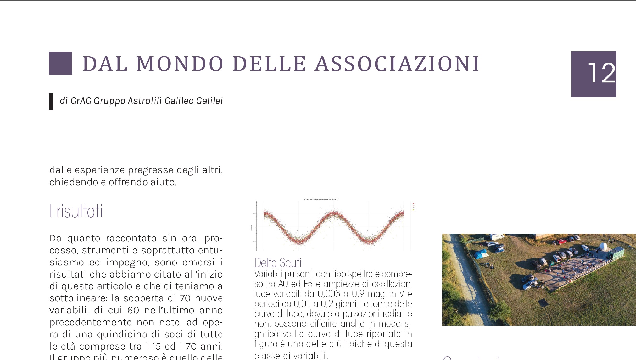 Il progetto del GrAG Gruppo Astrofili Galileo Galilei per la scoperta di nuovi astri pulsanti: 70 nuove stelle variabili, un’avventura collettiva all’insegna dell’astronomia inclusiva. Tutto il racconto e come partecipare.