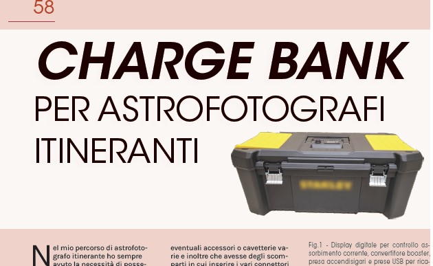 ancora nella rubrica ASTROTECNICA una chicca per gli astrofotografi itineranti: come costruire una CHARGE BANK imbattibile per le notti in autonomia sotto i cieli più belli d’Italia.