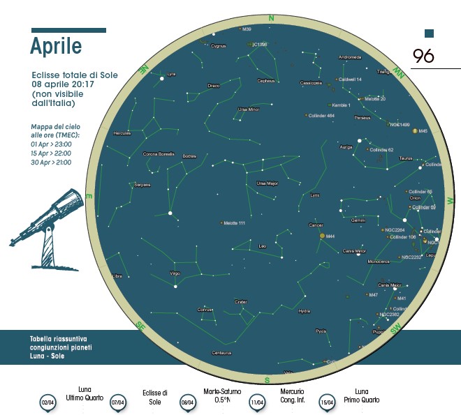 Comete, Asteroidi, Luna, Costellazioni, Congiunzioni e passaggi importanti per i mesi di Aprile e Maggio 2024.