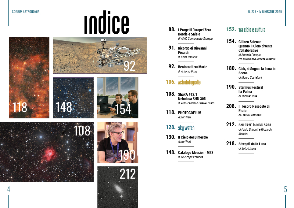 Cosa troverai in Coelum Astronomia n°275: INDICE