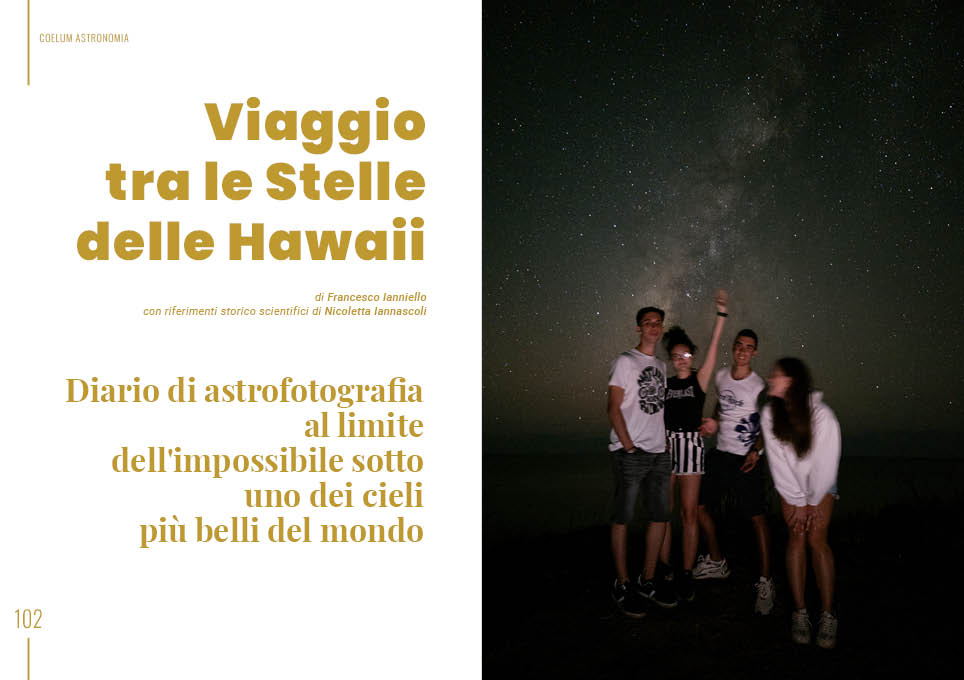 La sezione dedicata all’astrofotografia conduce invece in profondità nell’Universo lontano con ShaRA #14.1 – Abell 370 e la lente gravitazionale dell’Arco del Drago, realizzato da Aldo Zanetti e ShaRA Team, e alle latitudini dell’oceano Pacifico con Viaggio tra le Stelle delle Hawaii, firmato da Francesco Iannello con introduzione di Nicoletta Iannascoli. Un’impresa condivisa fra giovani amici, leggeri e spendierati sotto un cielo magnifico.
