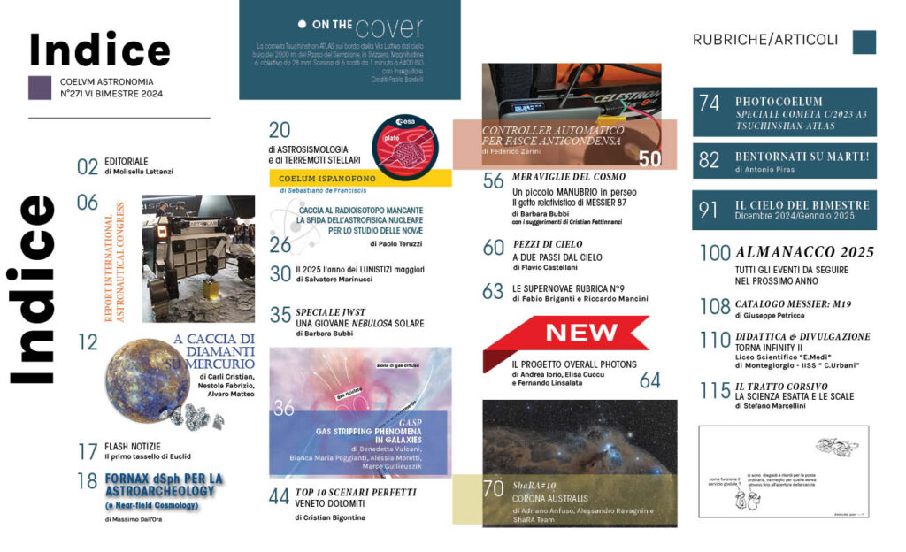 Ogni numero di Coelum è un portale verso l’universo, ricco di articoli approfonditi, immagini spettacolari e novità scientifiche che ti terranno aggiornato sulle ultime scoperte e sui fenomeni celesti.