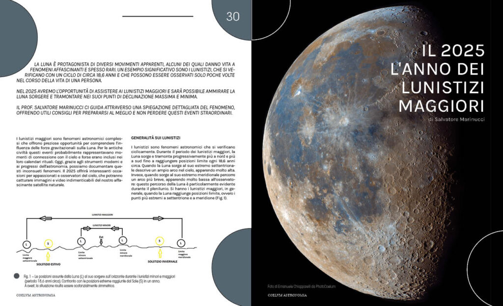 Nel 2025 avremo l’opportunità di assistere ai lunistizi maggiori e sarà possibile ammirare la Luna sorgere e tramontare nei suoi punti di declinazione massima e minima.