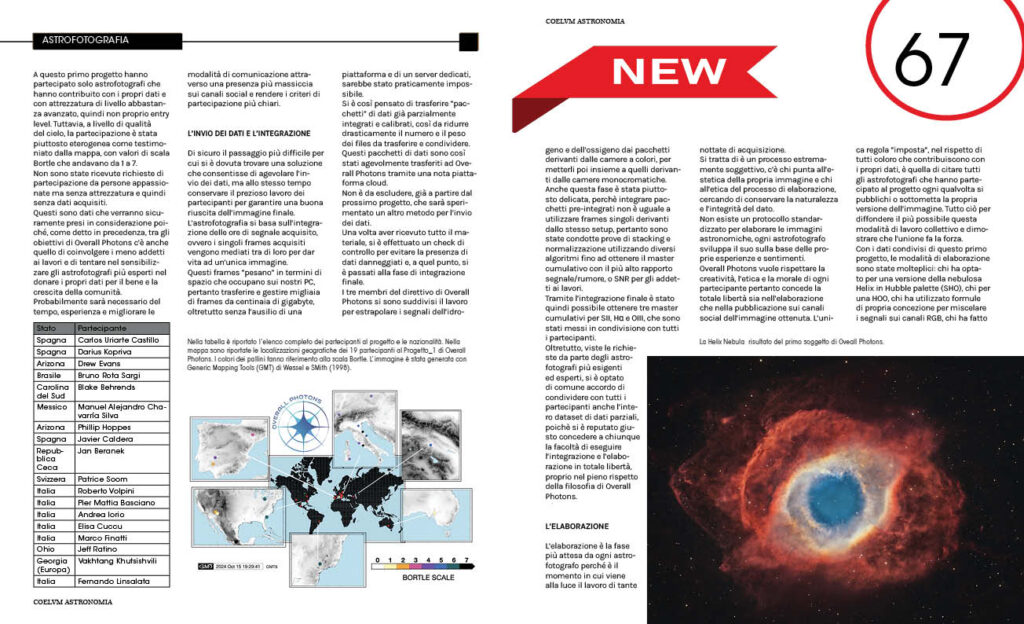 Il 17 Agosto scorso abbiamo brindato alla nascita del nuovo progetto di astrofotografia amatoriale condivisa Overall Photons, nome opportunamente scelto per sottolineare il fondamento su cui l’idea si basa: condivisione di fotoni da tutti gli astrofotografi del mondo.
