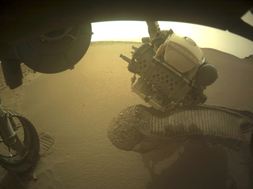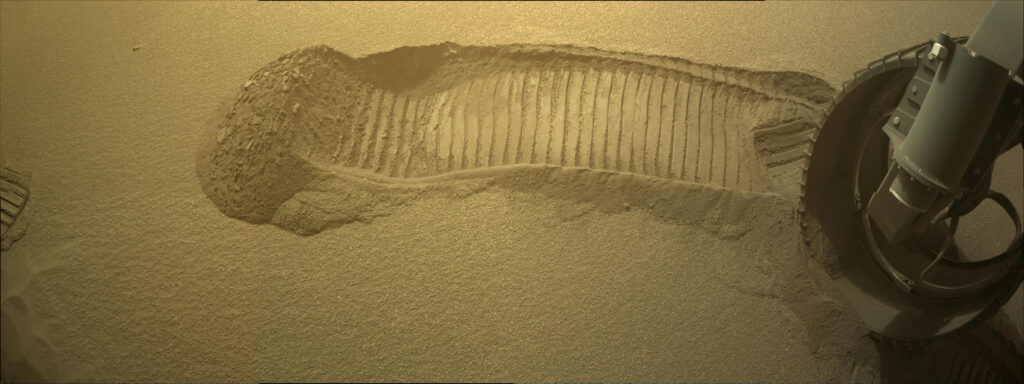 Il 21 ottobre, nel Sol 593, Perseverance ha eseguito una strana manovra. Ha leggermente deviato dal suo percorso in direzione nord e, per mezzo della sua ruota anteriore destra, ha a tutti gli effetti scavato leggermente nella regolite.