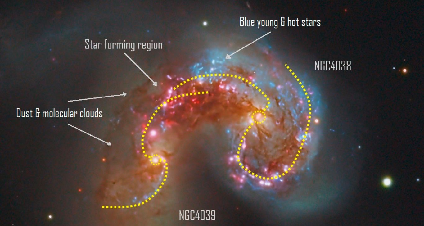 ShaRA#9 punta a due remote galassie che stanno danzando una complessa coreografia di collisione e fusione: le Galassie delle Antenne (NGC 4038 e NGC 4039)